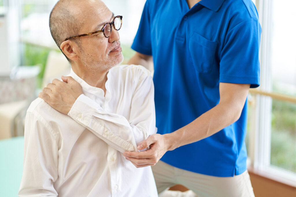 正しい座り方・立ち方・肩甲骨の動かし方、簡単にできるセルフケアを個別に指導します。